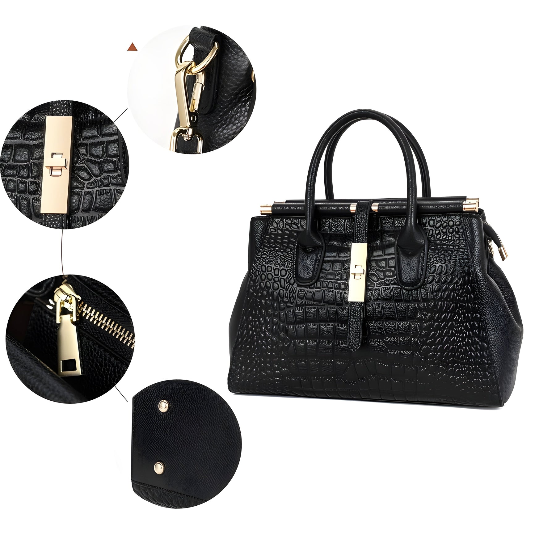 Elysian Croc Håndtaske er mere end bare en taske; det er et statement-piece, der komplementerer din unikke stil. Uanset om du er på vej til arbejde eller nyder en weekendudflugt, tilføjer denne taske et strejf af elegance til ethvert outfit.