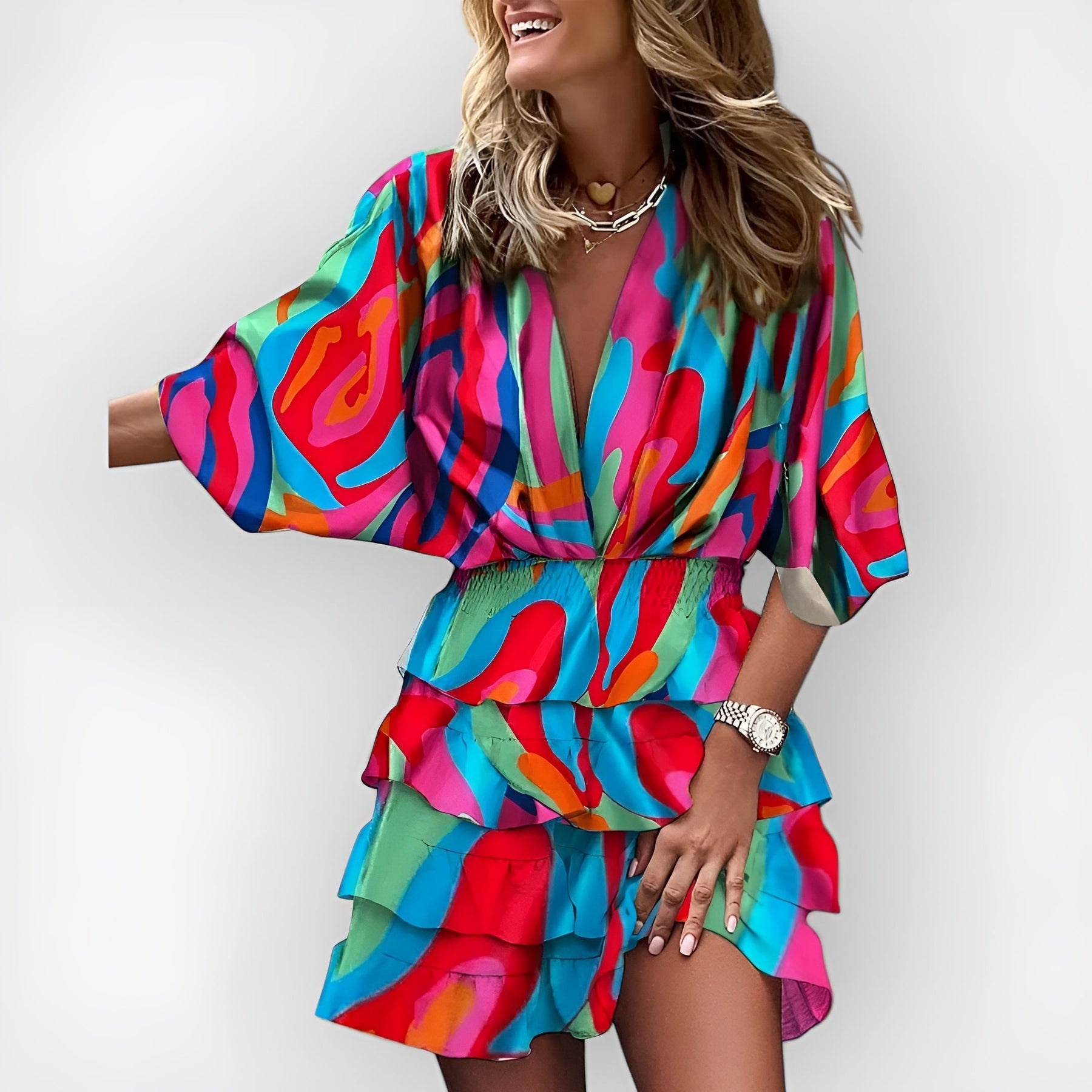 Adele™ er kjolen, der får dig til at føle dig levende, selvsikker og fuld af udstråling. Når du bærer hende, mærker du, hvordan hvert skridt bliver mere elegant, hvordan farverne løfter din energi og hvordan venners blikke hænger lidt længere end normalt. Den smigrende pasform omfavner kroppen på præcis den rigtige måde og giver dig både frihed og stilfornemmelse. En følelse, du ikke vil være foruden.