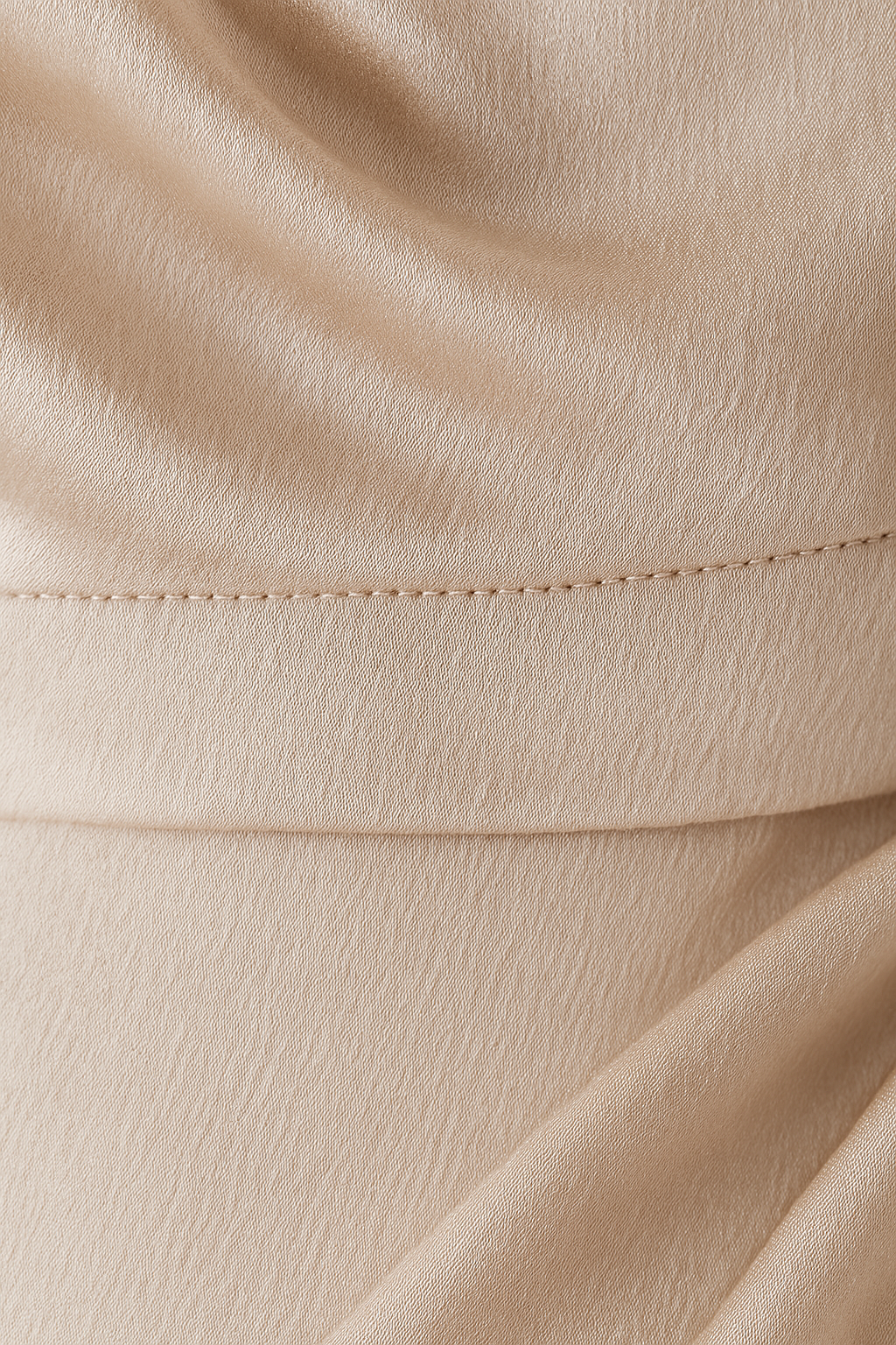 Med sit draperede snit og silkebløde stof smyger Cathleen sig elegant om kroppen og giver dig en følelse af frihed og lethed. Den subtile udskæring og høje slids tilføjer et diskret strejf af sensualitet, uden nogensinde at råbe for højt. Den er selvsikker – præcis som dig.
