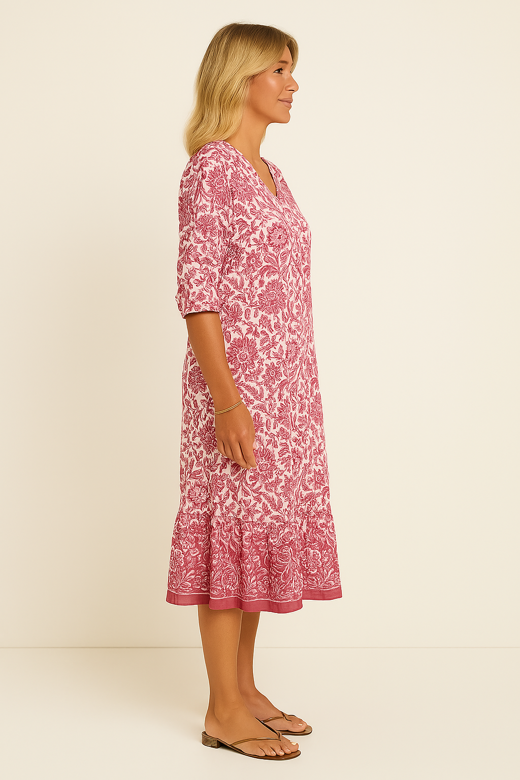 Derfor vil du elske denne kjole: ✓ Frisk & Let Stil — Perfekt til varme sommerdage og ferier✓ Flatterende Pasform — V-udskæringen og trekvartærmerne giver et elegant udtryk