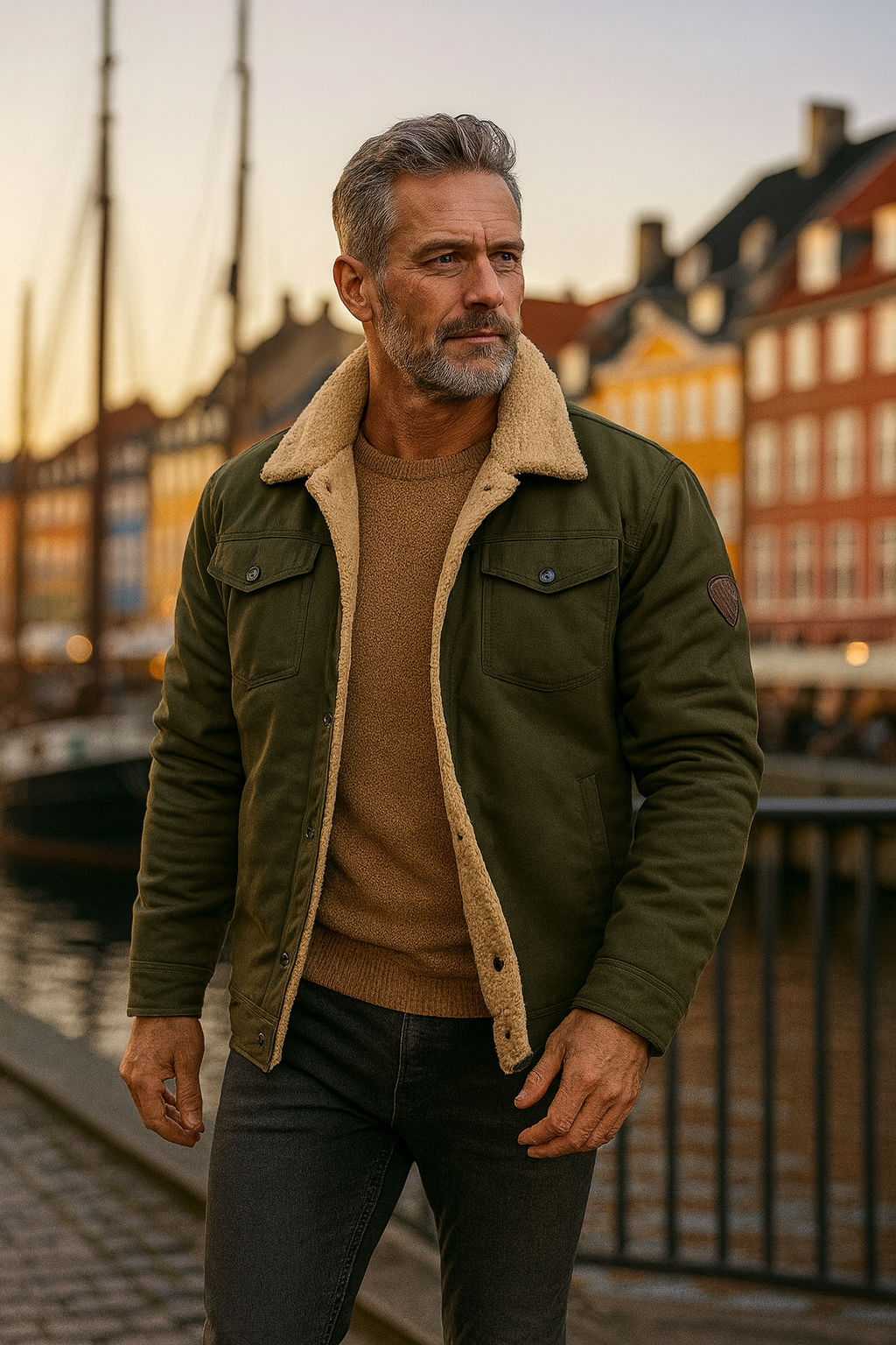 Hold dig varm og stilfuld med denne tidløse jakke foret med blød teddy. Den robuste yderside kombineret med den komfortable inderside giver både varme og elegance. Perfekt til kølige efterårs- og vinterdage, uanset om du er på vej til byen eller en tur i naturen.